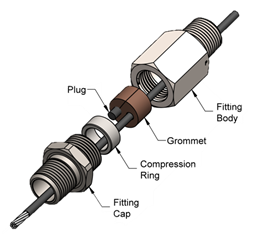 The biggest mechanical risk to sensor leads often occurs during installation. Wires can be struck, compressed, or bent when a system is being assembled, weakening or breaking the leads. Risk can be reduced using path control and minding bend radius, particularly around corners and through holes. After installation the biggest risk is generally vibration that, over time, can wear through lead wire insulation and produce breaks or shorts. The most common form of mechanical protection is rugged stainless steel braid (SSB). It can be configured with or without a flexible polymer jacket, typically made of fluorinated ethylene propylene (FEP or Teflon™). Basic mechanical protection can be provided by an FEP jacket alone, while the highest level of mechanical protection is armor, a thin, flexible, solid metal conduit completely enclosing the lead wires.